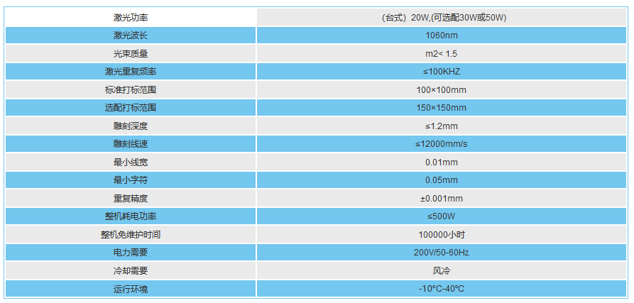 SC-Y- 20W光纖激光機技術參數: